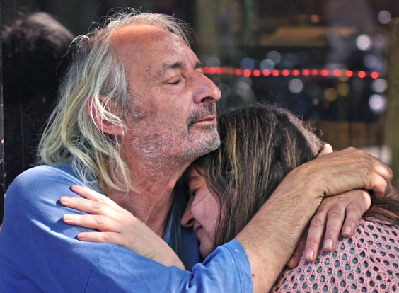 Lo que vemos a continuación es ese momento en el que la propia Anne y Serge Blazevic se llevan mutuamente por delante y terminan desplomados sobre la vereda. Y ese accidentado encuentro será el inicio de una relación que los convertirá en seres inseparables: golpeados (en más de un sentido), con dificultades económicas (él) y motrices (ambos), pero de una nobleza incuestionable.