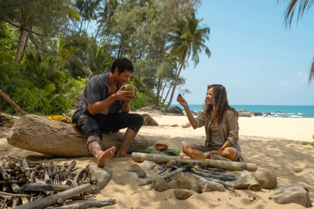 Tras ese prólogo, la película cambia no solo de geografía (terminarán en una isla tropical) sino también de tono, de registro y de formas de relacionarse, ya que Linda se mostrará mucho más dúctil y decidida para las tareas de supervivencia que un Bradley demasiado inútil sin las facilidades de la sociedad de consumo y las prerrogativas del capitalismo salvaje que lo forjaron.